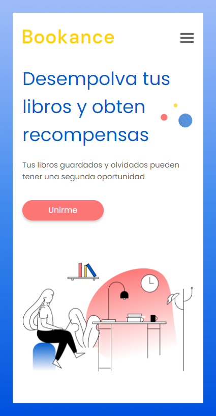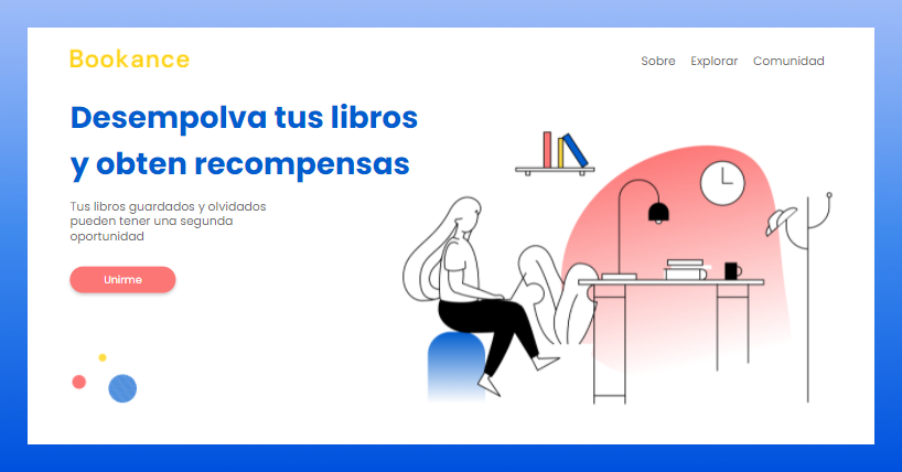 Landing page para los amantes de los libros donde es posible pertenecer a clubes de lectura, vender e intercambiar libros usados.